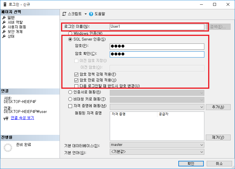 - 로그인 이름 : 생성할 로그인 ID 입력