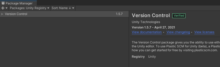 먼저 PlasticSCM은 유니티 프로젝트를 시작하면 항상 설치된 패키지로 이름은 Version Control 이다.