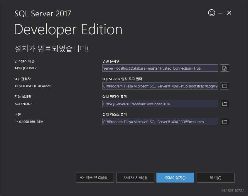 ✔ MSSQL 2017 설치 - SQL Server 2017 설치 및 환경 설정